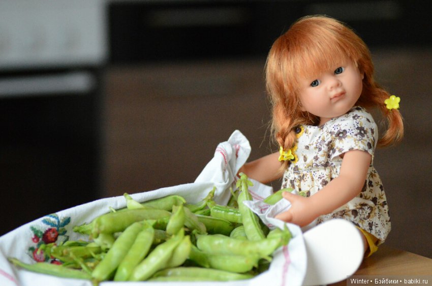 Доброе время суток всем куклолюбителям и кукложителям! Вот и заканчивается лето, первое лето, которое мы с малышами прожили в поселке, сменив городскую квартиру на загородный дом. Хлопот было много и с участком, и с обустройством дома. Даже кое-что посадили на участке: несколько ягодных кустиков, яблоньку, две вишенки, кусты роз и горох! Любимый горох из детства!!! Вот о нем и пойдет сегодня речь.