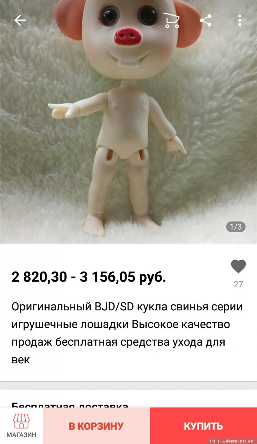 Вчера кстати в шопике кто то выставлял такого порося, я спросила про функционал, продавец говорит, что голова тяжёлпя и куклёнок сам не может стоять из за этого…
