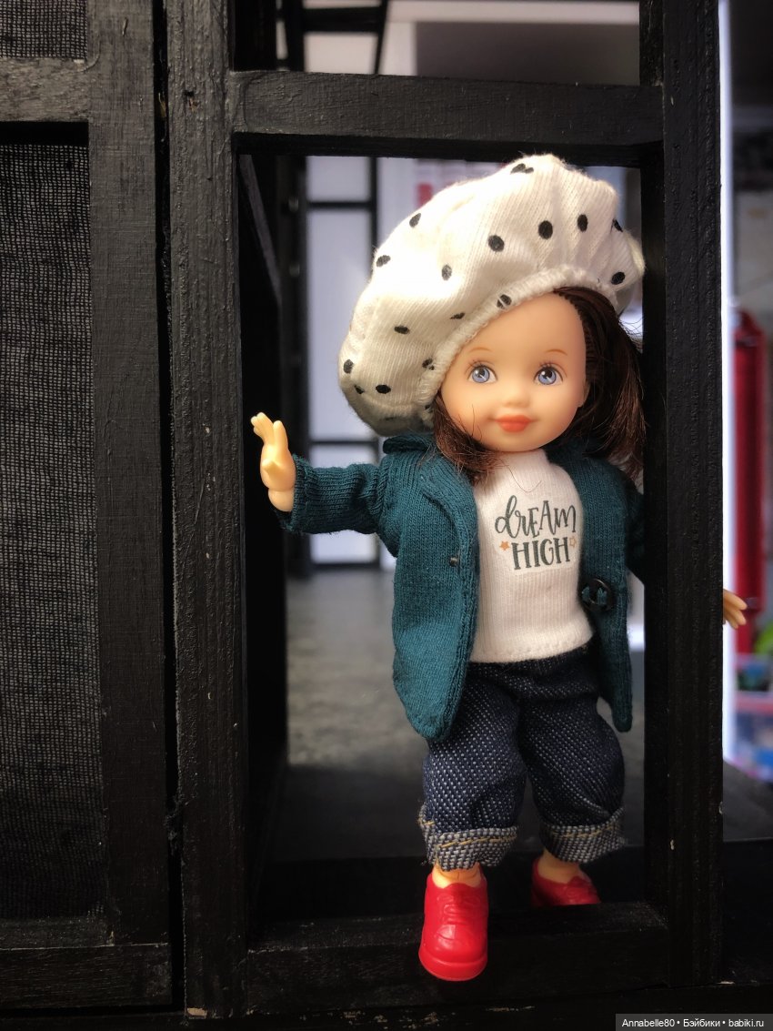 Мне просто очень понравилась именно эта мордашка. Мультфильм про неё я не смотрела (но его смотрели мой муж с дочкой, и сюжет мне, конечно же, пересказали). Моя Ванелопа — просто маленький источник энергии, разных идей и проказ, подбивающая остальных кукол на различные приключения. Для такой девчонки, разумеется, мне нужно было очень подвижное тело.