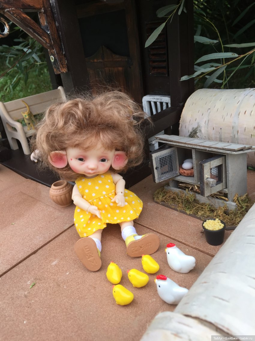 Лена, какая чудесная локация)) Наседки в курятнике, цыплята, мягкий мох, бидон с молоком и уютно гуляющие котики))) И Вареник, которая чудо уже сама по себе