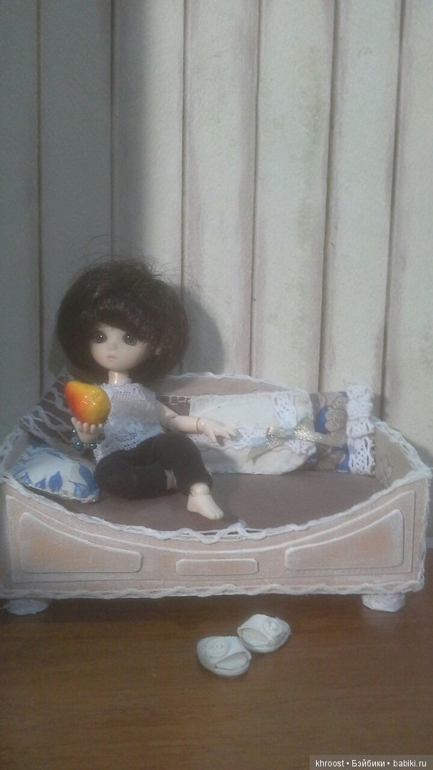 Добрый день, дорогие друзья! Я очень люблю все миниатюрное, маленьких куколок живет у меня не мало, но до некторого времени к шарнирным я как-то была равнодушна. Пока у меня не появилось вот это чудо Эта бюджетная куколка родом из Обитсу. И приехала она комне в зловеще-смешном разобранном виде. При первом взгляде тут же вспомнился любимый мультик из детства про Кентервильское привидение («остановимся на безголовом варианте»:)). Признаюсь честно, для меня очень важна внешность куколки, я до сих пор считаю, что куклы должны, просто обязаны быть красивыми, чтобы глядя на них созерцать правильность пропорций, одухотворяющую красоту и испытывать радость и умиление. К сожалению, сейчас я очень редко вижу таких кукол. Эта малютка стала неожиданным сюрпризом. После прорисовки личика на меня посмотрело абсолютно милейшее существо и мгновенно заняло место в моем сердце:) Так как в это время меня как раз попросили сделать на заказ комплект для Обитсу малышки и ее мамочки (малышке обувь, колготочки, платье из итальянской пряжи и японского бисера и пальтишко из ангоры, а мамочке шарфик на весну того же нежно-мятного цвета), моя новая малютка как нельзя лучше послужила моделью для этого. Не могу не поделиться с Вами этим принесшим мне массу позитива и радости, процессом. Надеюсь, что и Вас малютка порадует. Скоро весна!