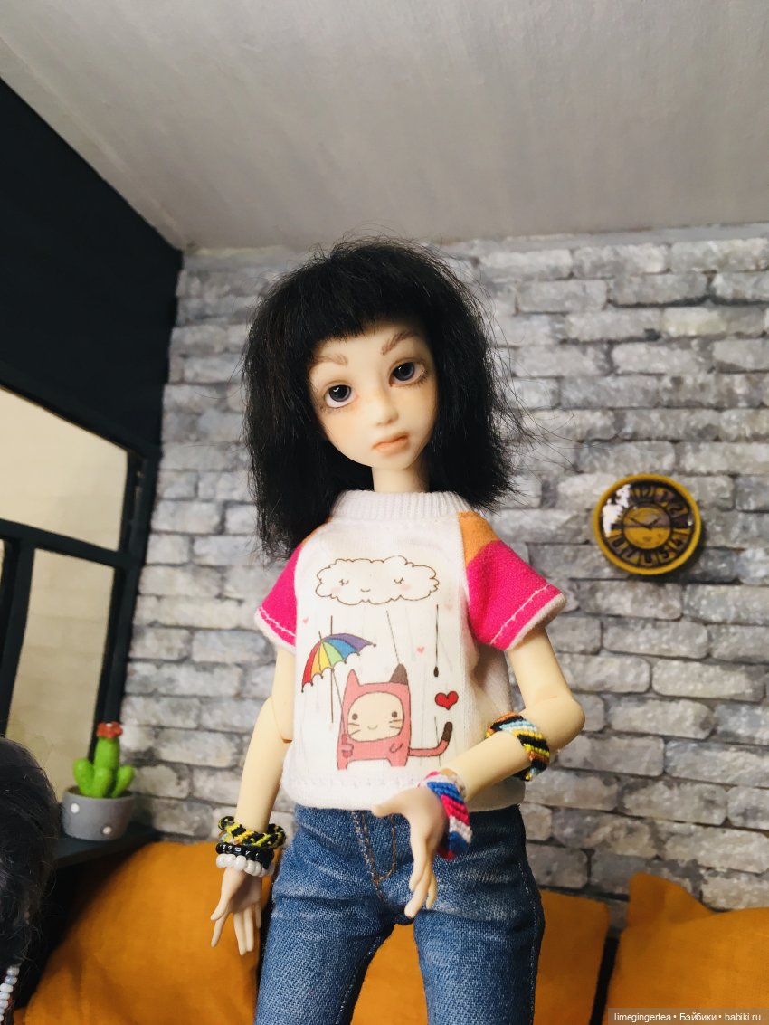 Имени пока нет, мейка тоже… пусть побегает умытая)и прическу ещё не придумала, очень хорошие волосы в парике, жалко отрезать))