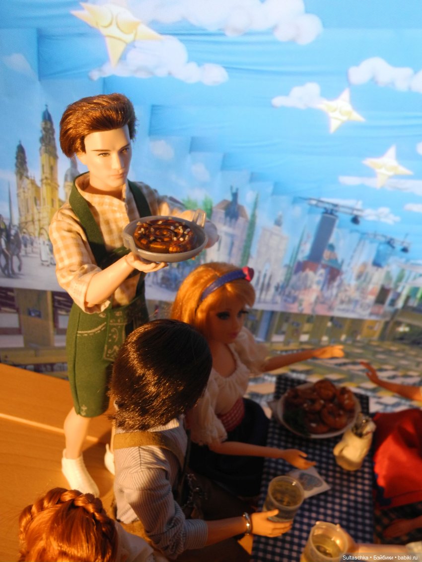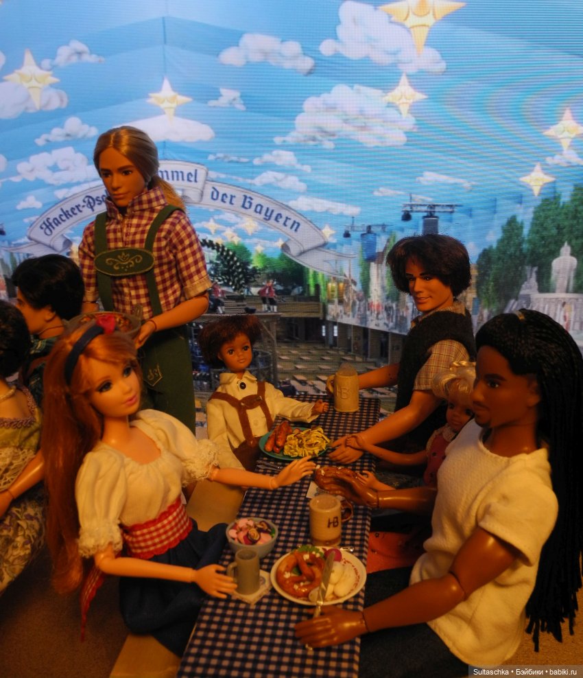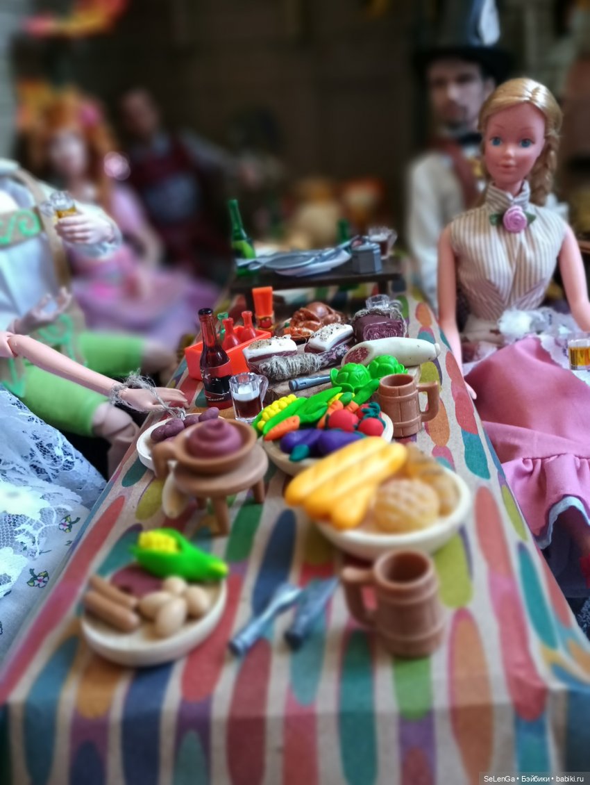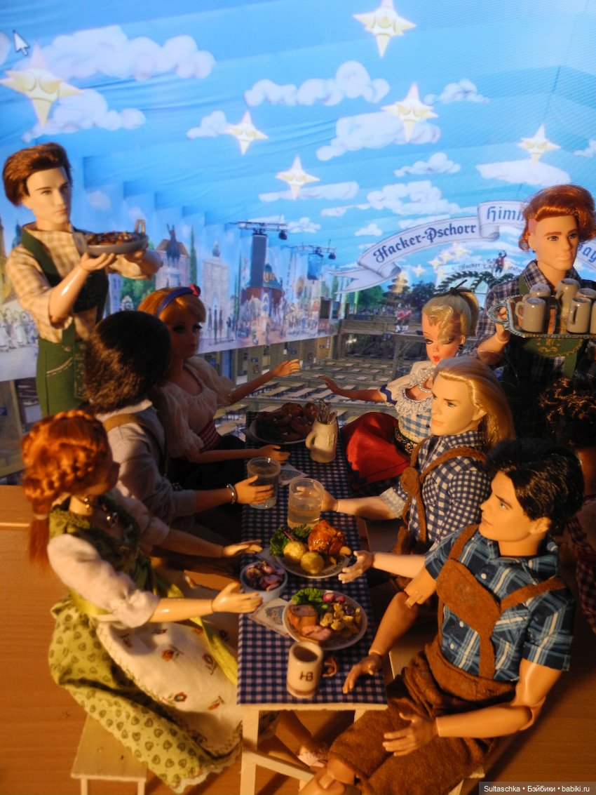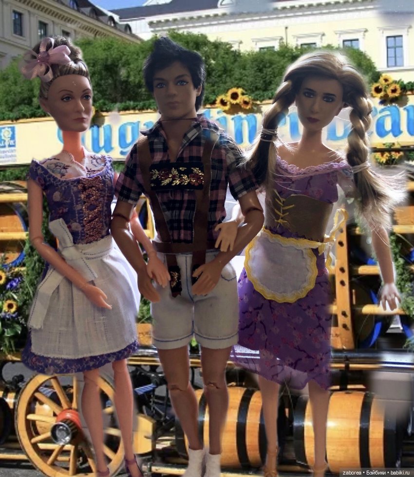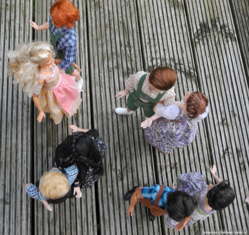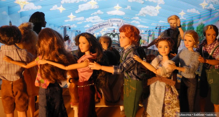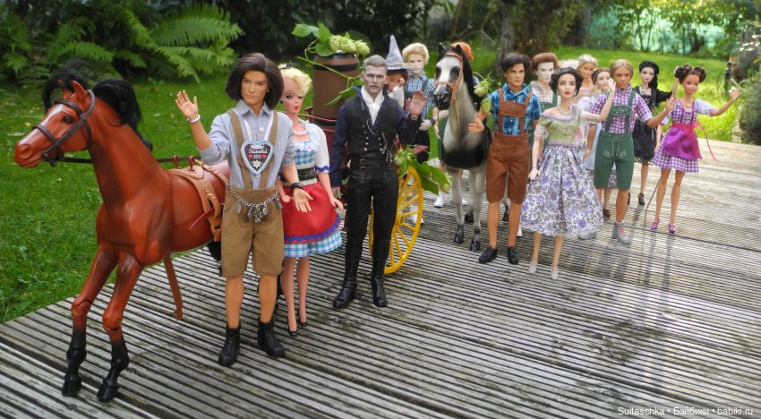 Начинаем праздничное шествие! Во главе его наш сегодняшний губернатор Серж, прабабушка всех Барби Лилли, главный управитель нашего куклосемейства Геллерт и Мюнхенский ребенок (в обычной жизни Кузя :))