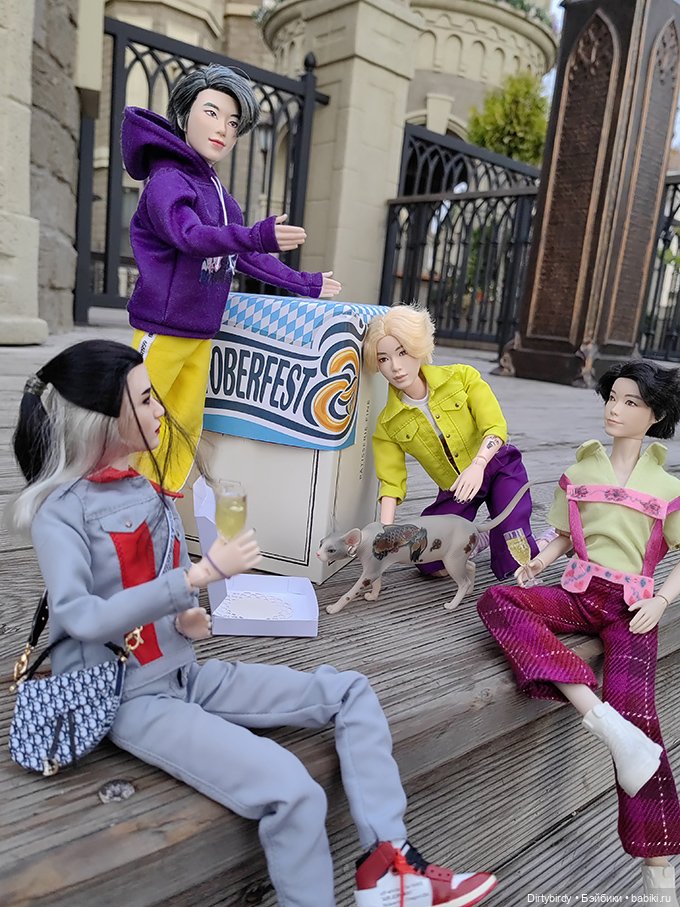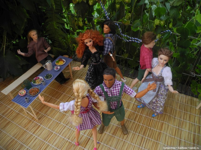 Начинаем праздничное шествие! Во главе его наш незаменимый губернатор Серж, прабабушка всех Барби Лилли, главный управитель нашего куклосемейства Геллерт и Мюнхенский ребенок (в обычной жизни Кузя Буш:))