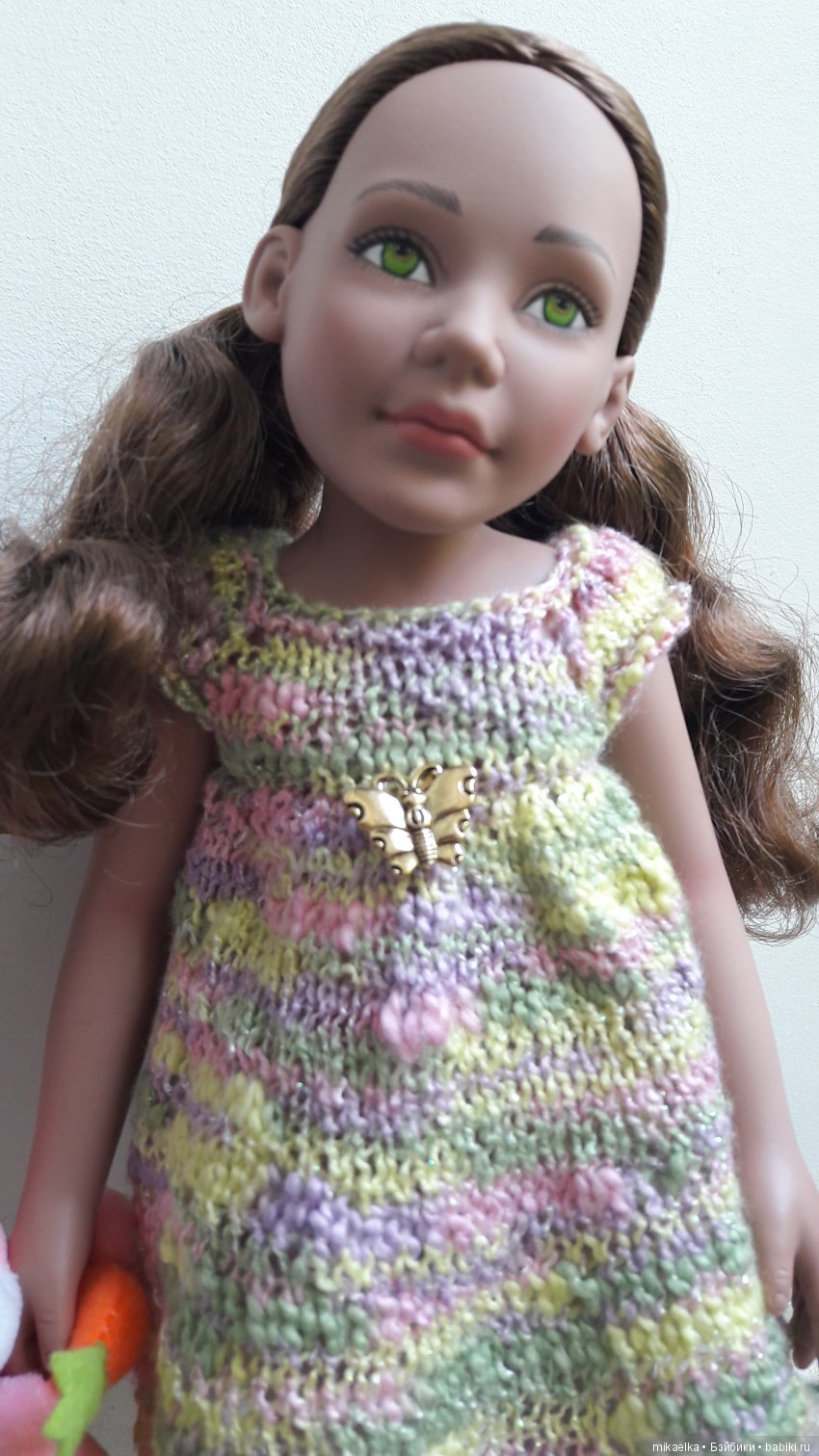 Что могу о ней рассказать?! Каталог 2012-2013 гг. Ростиком 28 см, моя шарнирная, устойчивость -вялая. Постоять, надо долго уговаривать. Детки с обычными телами очень устойчивые, даже без обуви. Волосы прошиты по всей голове, на концах немного размочалились. В основном, прошивка под прическу, в области лба большие прогалы. Но мне очень нравится как прошита окантовка у лица, тонкими прядками, цвет волос естественный, без синтетического блеска.Если возникнут вопросы, пишите в комментах, постараюсь ответить.
