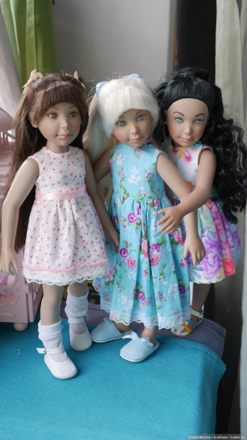 В комментариях — второе фото, ЛиЭнн в фиолетовом пальто, с рыжими косичками. У меня на фото она — в центре. Куколка паричковая, я подобрала ей другой образ. Рыжуха — у нас Яся) А Нюта стала тёмненькой, что очень идёт к её карим глазам…