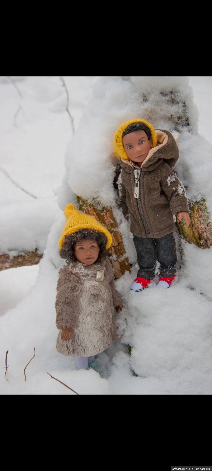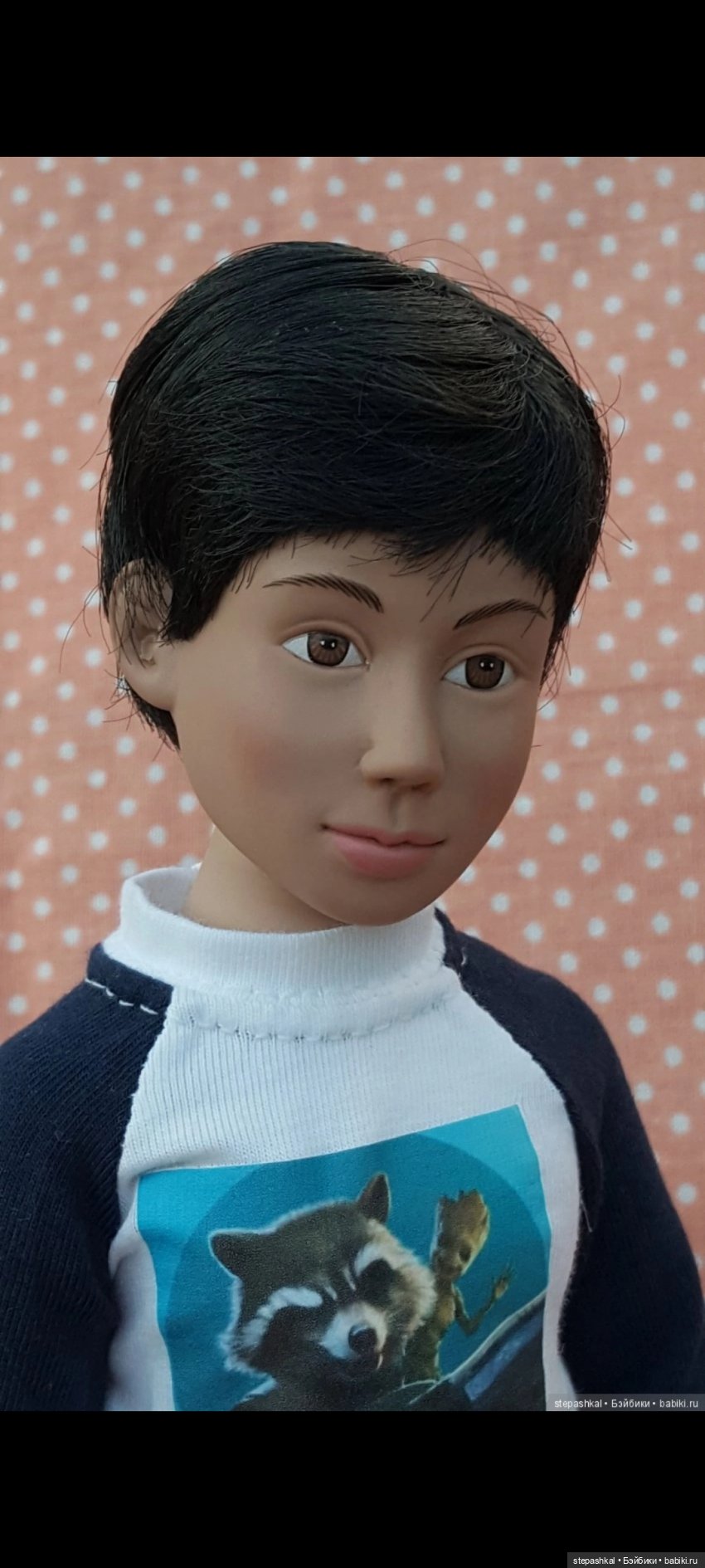Раздевать я малыша не стала, потому что взяла фото продавца. Вот там, где он стоит на полу — это фото американского продавца. Остальные мои. Ещё я хотела найти фотографии его подруги Луизы, но в интернете не нашла. А на бейбиках брать побоялась, потому что знаю случаи, когда люди возмущались, что взяли их фотки. Я ругаться не люблю, поэтому решила, что лучше я покажу только свою куклу.