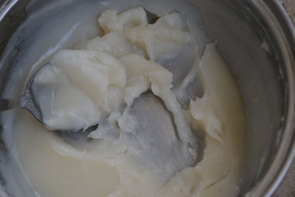 Тут я начала думать каким клеем приклеить бинт на основу. Посмотрела свой арсенал клея и поняла, что нету ПВА. В магазин бежать было лень и меня осенило, что можно сварить клейстер, но крахмала тоже не оказалось в наличии. Не беда, подумала я, буду варить из муки))) Не помню в каком году я его варила, но лет 25 точно назад, пропорции все позабылись, в итоге у меня получилась невероятно густая масса))) легких путей не ищем называется) Не стала переваривать, работала с этой кашей. Фото уже не делала, но сам процесс думаю понятен. Кисточкой наносила клей на основу и прикладывала бинт, делала складочки. В качестве тонких корешков использовала ниточки.