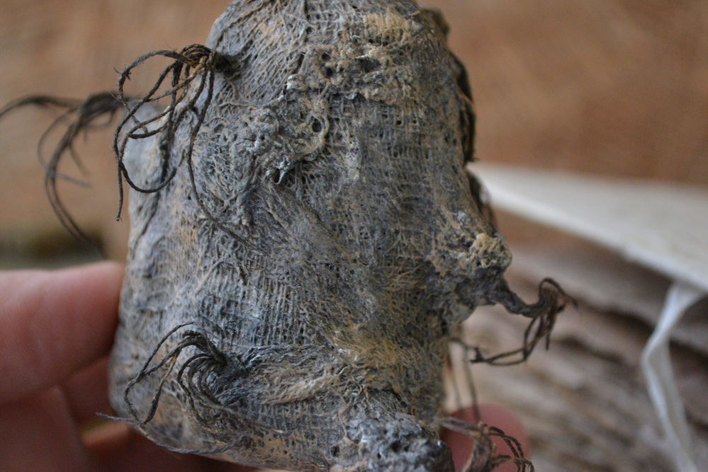 Фактура поближе. Очень интересная получилась, помимо бинта обычного на ножки ручки клеила бинт эластичный. Для меня это вообще находка получилась, пупырышки такие. Больше на каменную фактуру похоже.