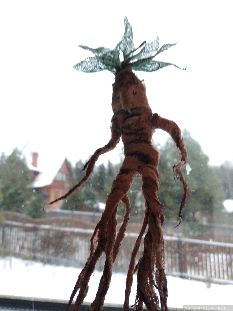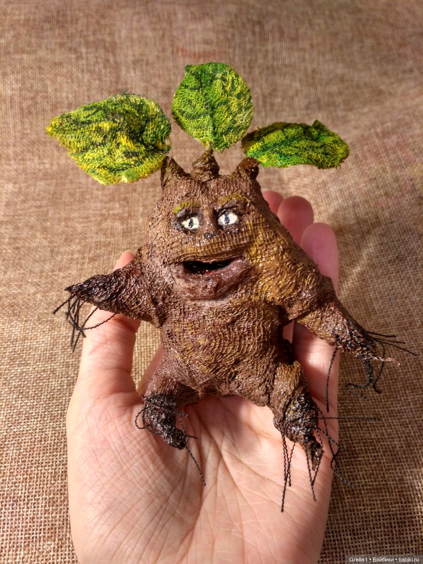 — Работать в любой техники. Это может быть не только игрушка, но и резьба, выжигание, мозаика, кашпо, бутафория, хоть топиарий. Все что душе угодно, но с намеком на Мандрагор.