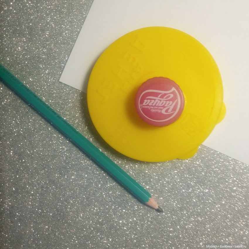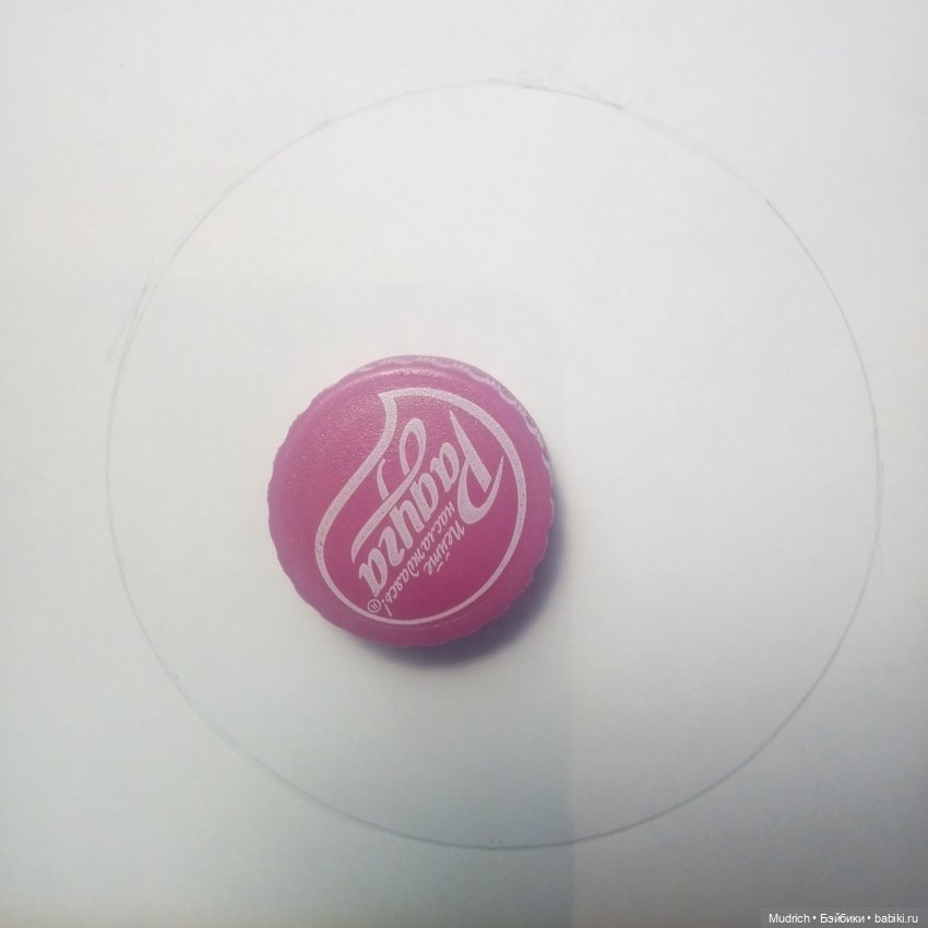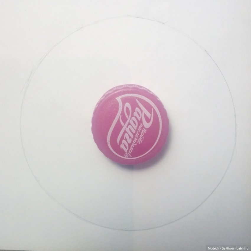 Далее нужно сделать внутреннее отверситие. Оно же равно верхушке, т.ч. вырезав не выкидывайте кружочек. Итак, берём крышку с самого простого лимонада и обводим. В серединке, если у нас классический вариант.