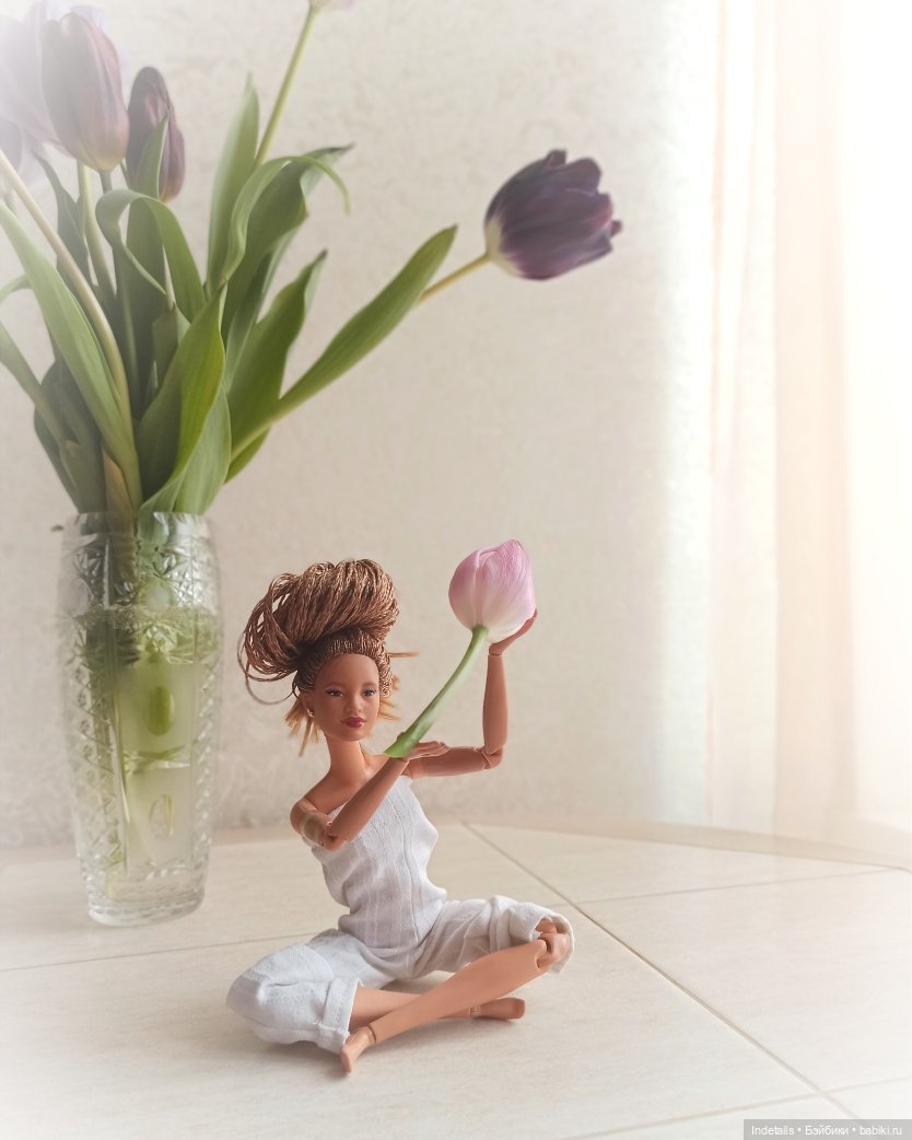 На самом деле это очень логично. Зарядка, потому что она и режим дня уменьшают стресс. Даже при выходе из депрессии прежде всего необходимы эти «ритуалы». А восточная, потому что меня уже давно подмывало отснять в куклах мой любимый комплекс Сурья намаскар. Простой и романтично переводится «Приветствие солнцу». Полезный, имеет крайне мало противопоказаний, но точно я не помню полезности. Очень уж давно я с этим комплексом познакомилась.