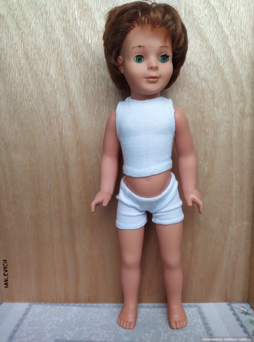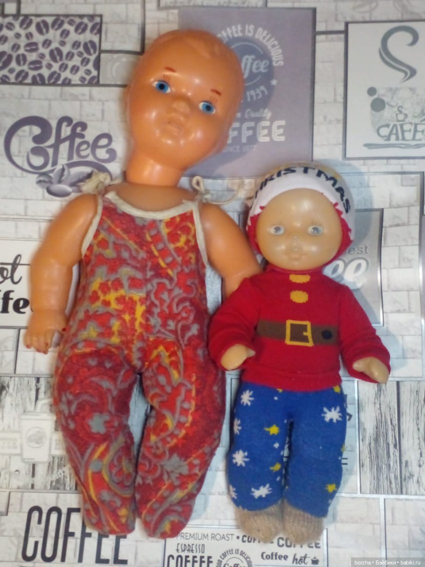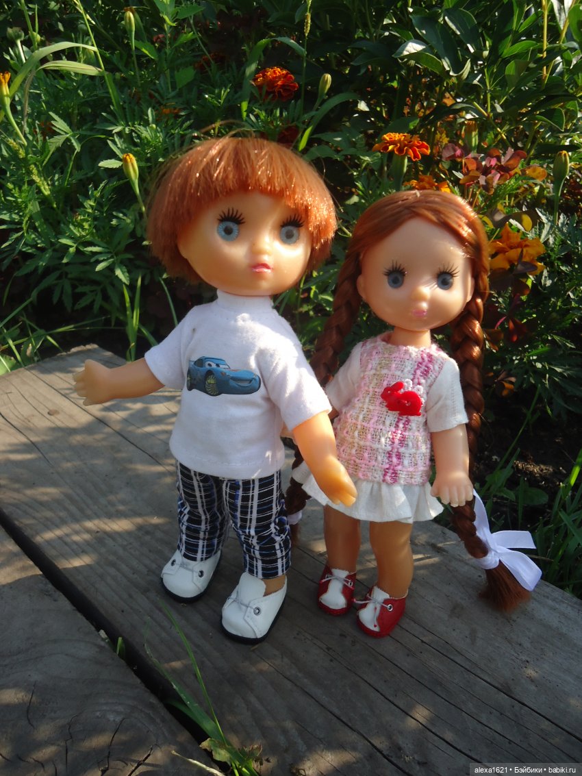На самом деле, это две Маринки Ворошиловградской фабрики. Первая была со светлыми, но очень плохими волосами. Они лезли пучками и я ее перепрошила. А потом сразу увидела темноволосую в продаже. И решила, что будет братик. Но, как-то не по братски они друг с другом общаются:)))