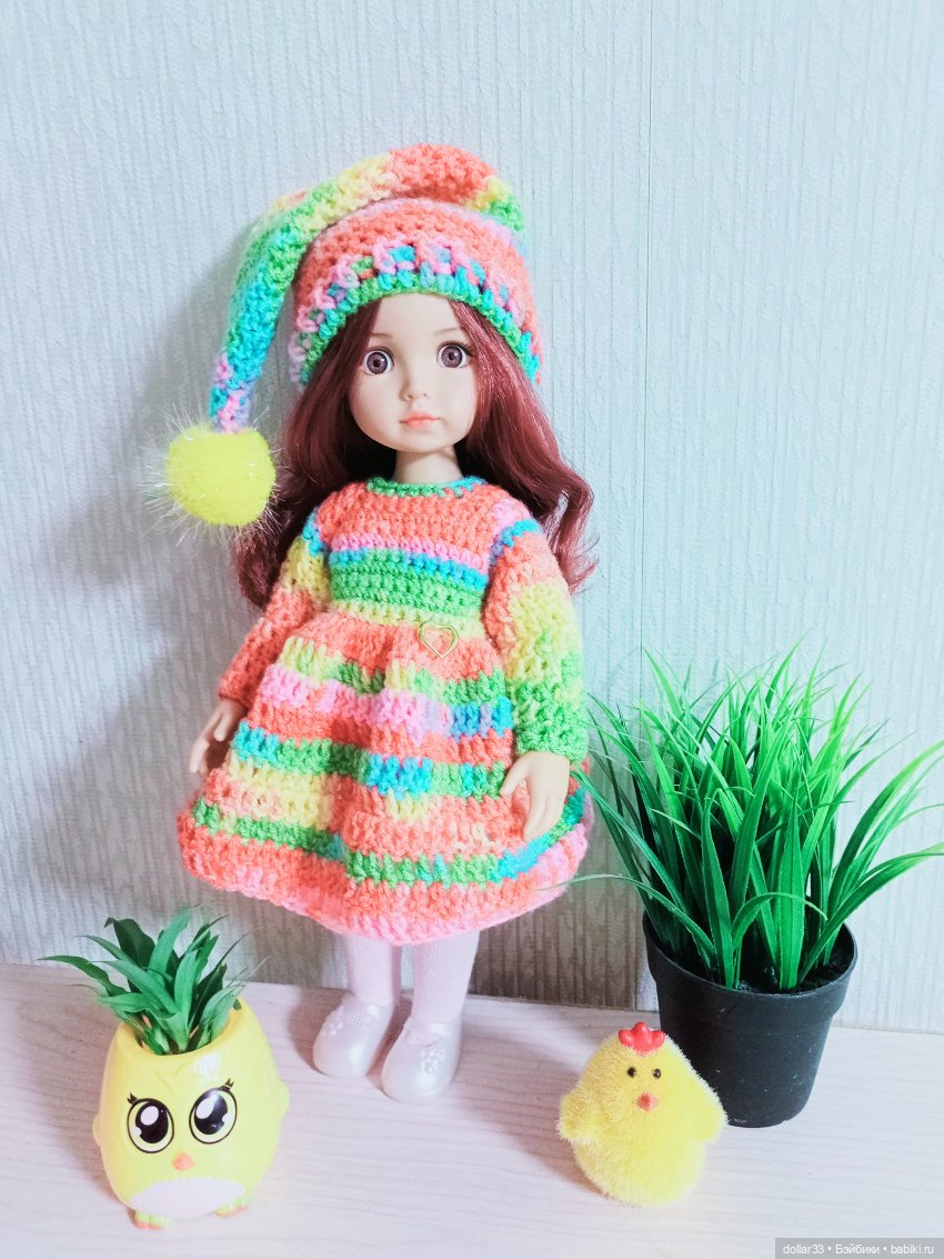 После увлечения куклами, поверила, что смогу вязать хоть что-то. Вяжу сейчас простые вещицы. Практически все без МК. Просто примеривая на куклу. Не потому что, считаю себя талантливой, а скорее наоборот, — до сих пор плохо понимаю описания вязания в МК.