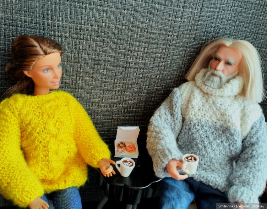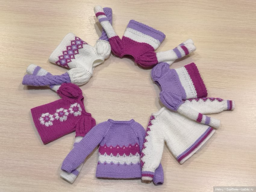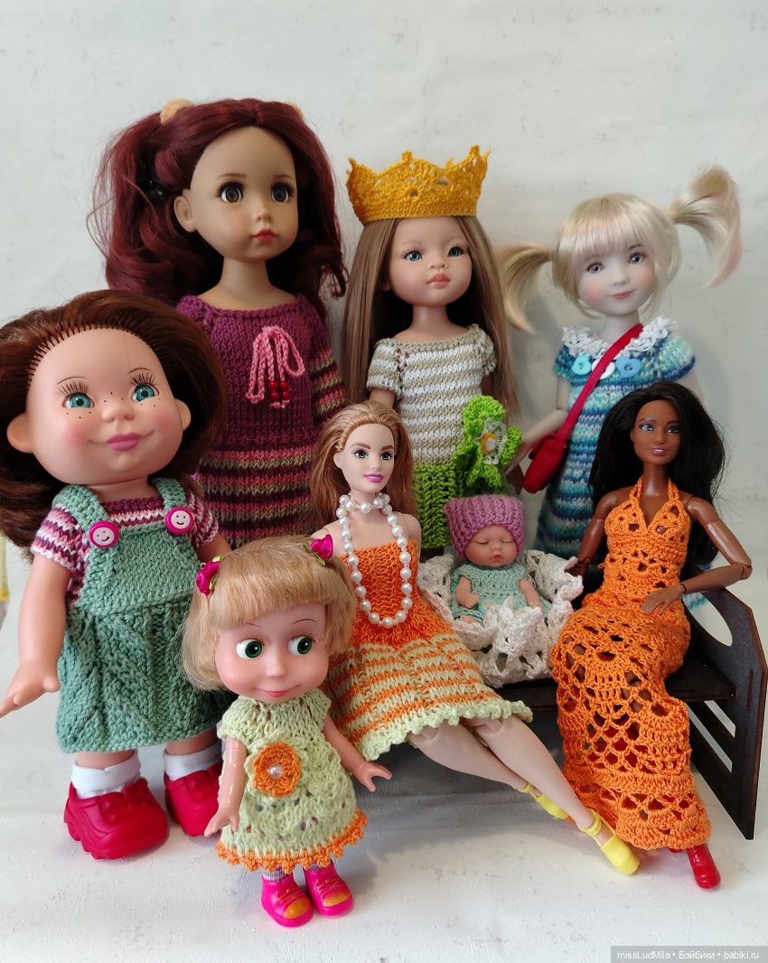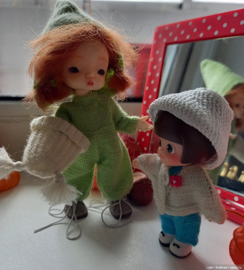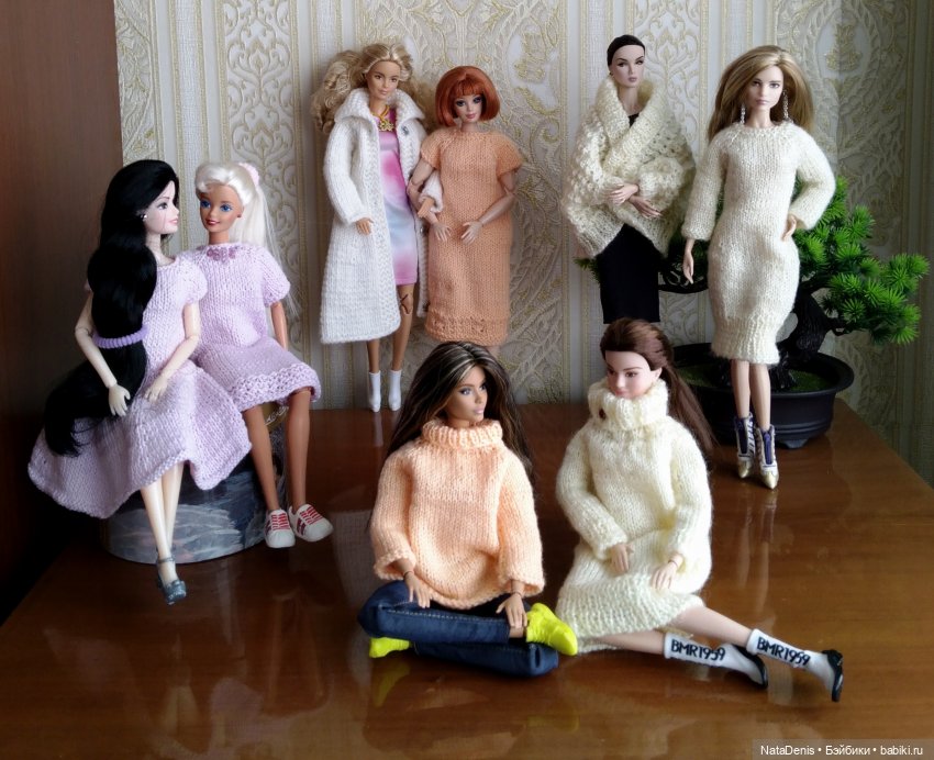 Ну, и собственно, мои кукложители в вязаных вещах.