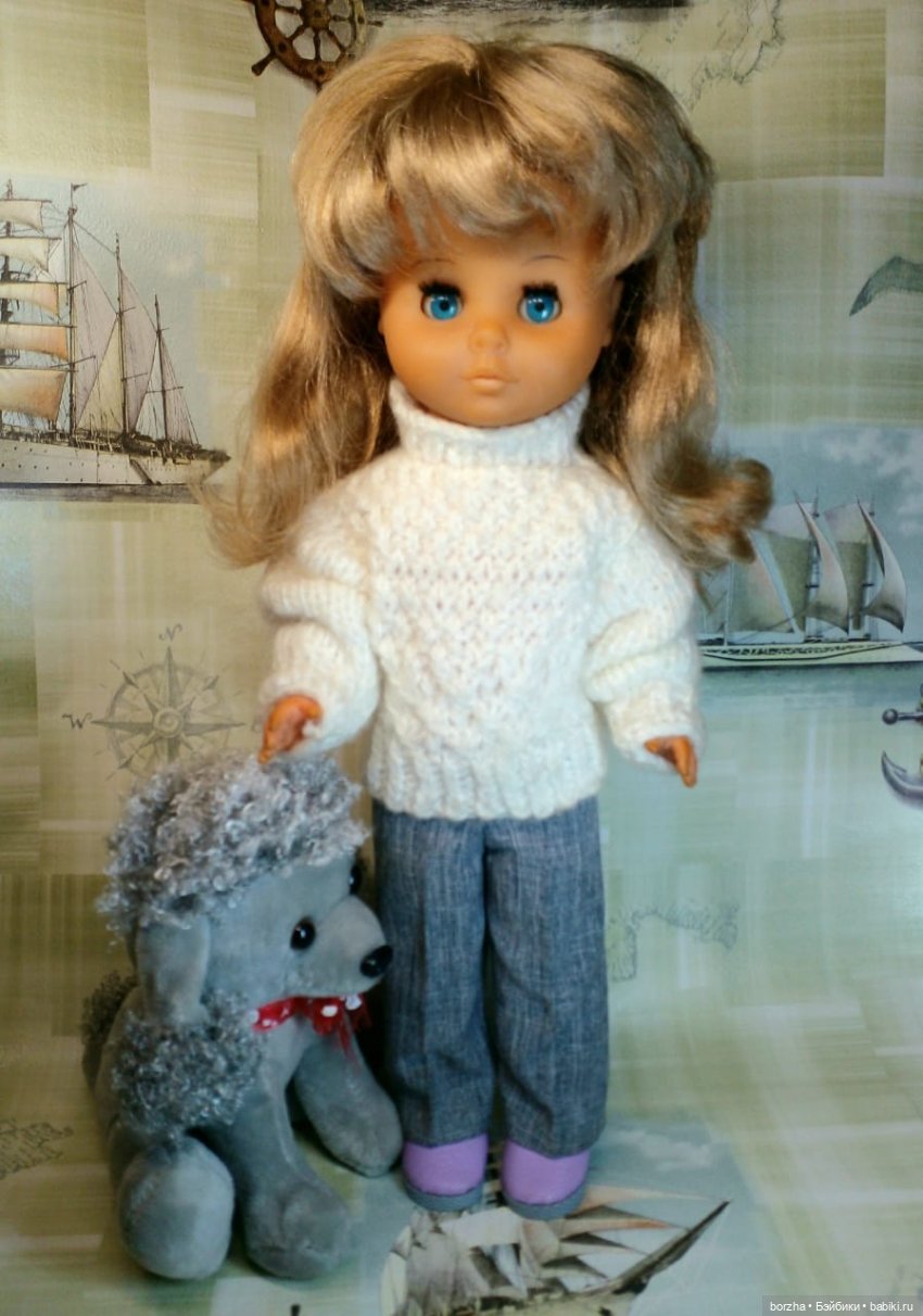 Я могу связать что-то для кукол, но только то, что состоит из прямых фигур. Квадрат, квадрат, рукава — вот и свитер! :))) Никаких сложных узоров, микро спиц и пр.