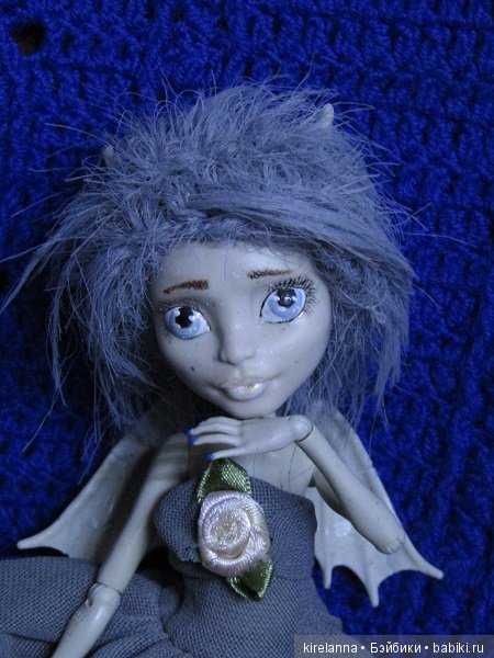 Изначально хотелось получить именно статую. С черными провалами глаз. Но как всегда кукла сама решила, какой ей быть. И получился печальный оживающий камень. Но чего то все равно не хватало.