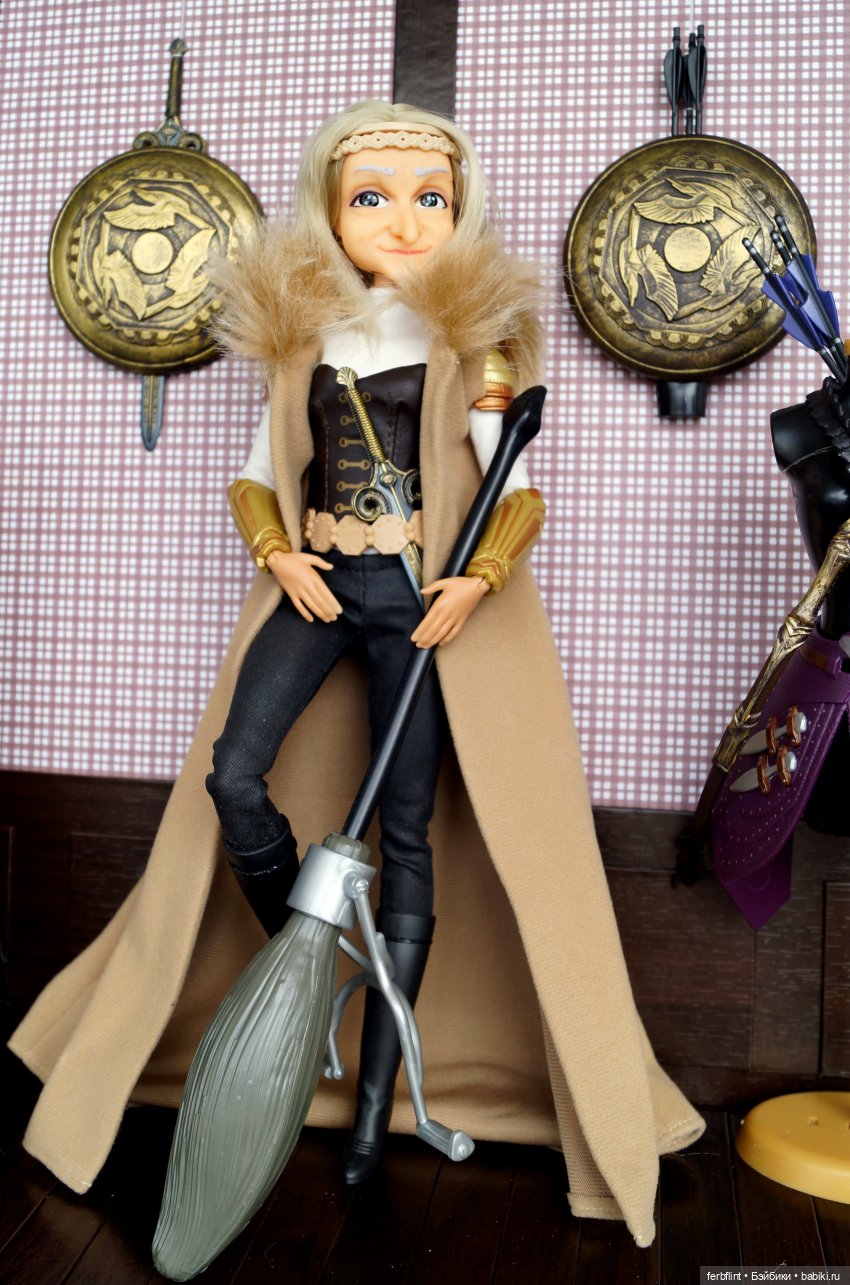 Сшила для нее многослойный наряд, смастерила метлу, полностью перерисовала лицо и взлохматила родные волосья — они у нее такие синтетические, что в мочалку превращаются в раз)))