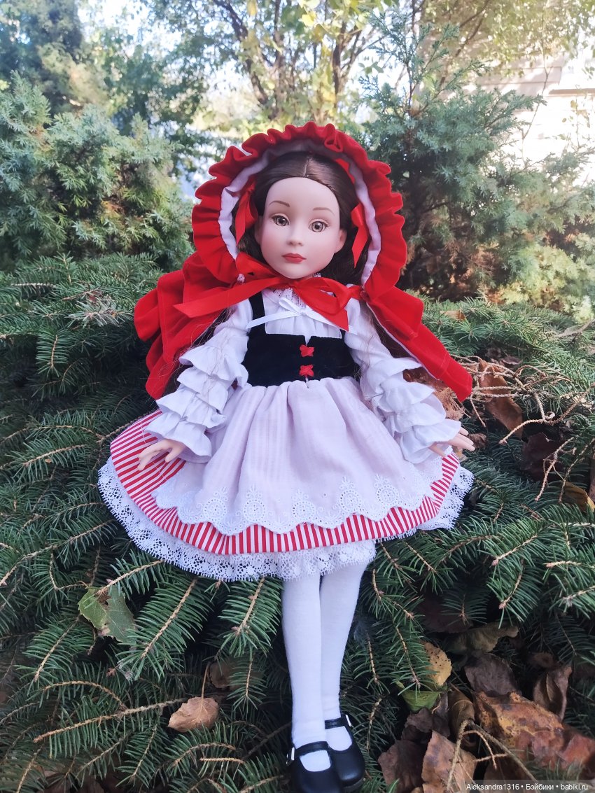 По задумке должно было быть 4 куклы, шапочка, волк, бабушка и охотник. Но к тому моменту как мы сделали шапочку — остальные три пришлось отложить, а потом довольно шустро шапочку купили и она уехала куда то в Германию, идея, к сожалению не осуществилась (впрочем это не помешало нам доработать и сделать совсем иное веселое трио по этой же теме через полтора года после этой девочки))