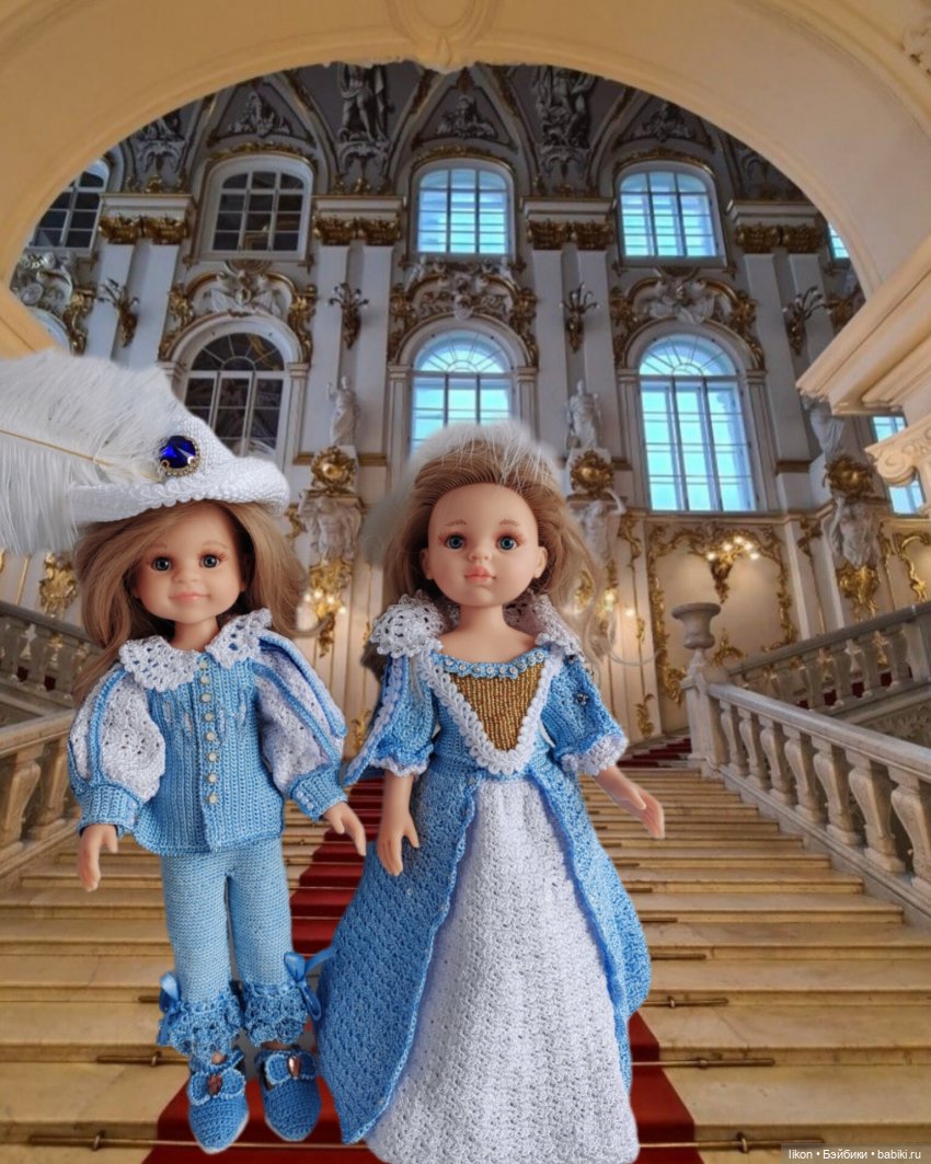 В качестве наряда выбрано голубое платье с алмазными подвесками.