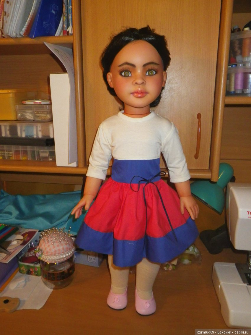 Глядя на Мэй, мое воображение разыгралось! Я представляла, что могу нарядить её испаночкой, индейской девушкой, японочкой или китаяночкой. Только очень меня печалили её скромные верхние ресницы и огорчало отсутствие нижних.