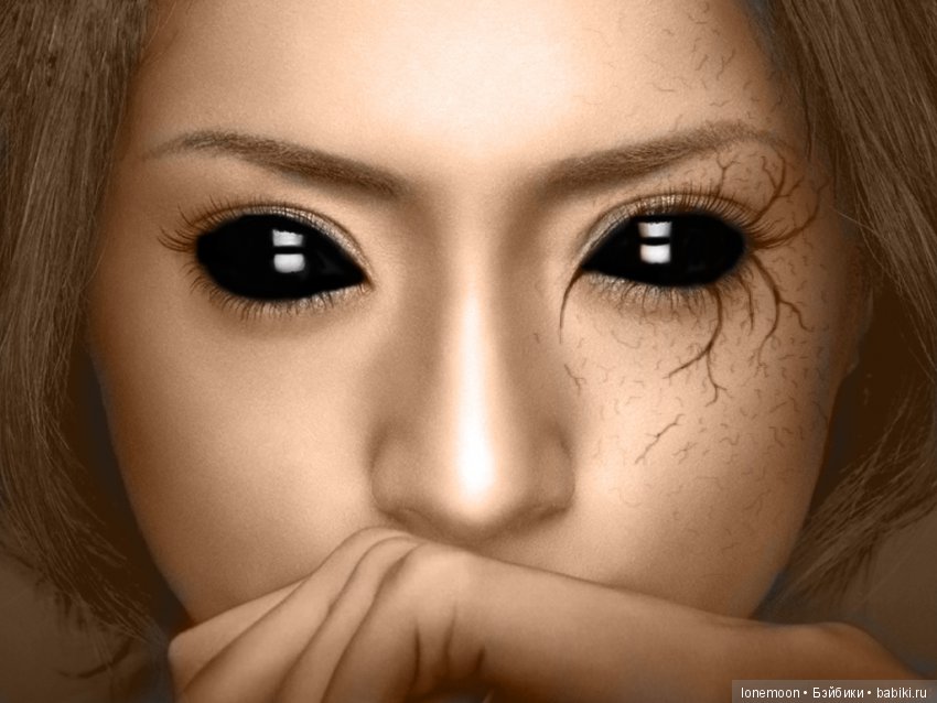 Вставили бледно голубые глаза с огромным зрачком мулатке: ООАК)))
