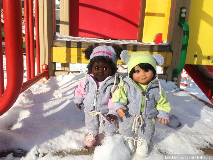Мы пока не гуляли. У нас нет зимней одежды. Всё руки не доходят сшить комбинезоны малышам.