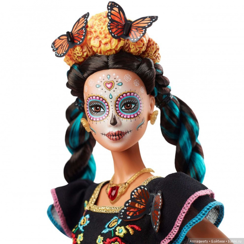 Был октябрь и из всех щелей лезла тема хэллоуина, а она у меня ассоциируется с мексиканскими масками ко дню мертвых, которые я люблю всем сердцем, поэтому первая малышка получила маску Калаверы Катрины по моему представлению.