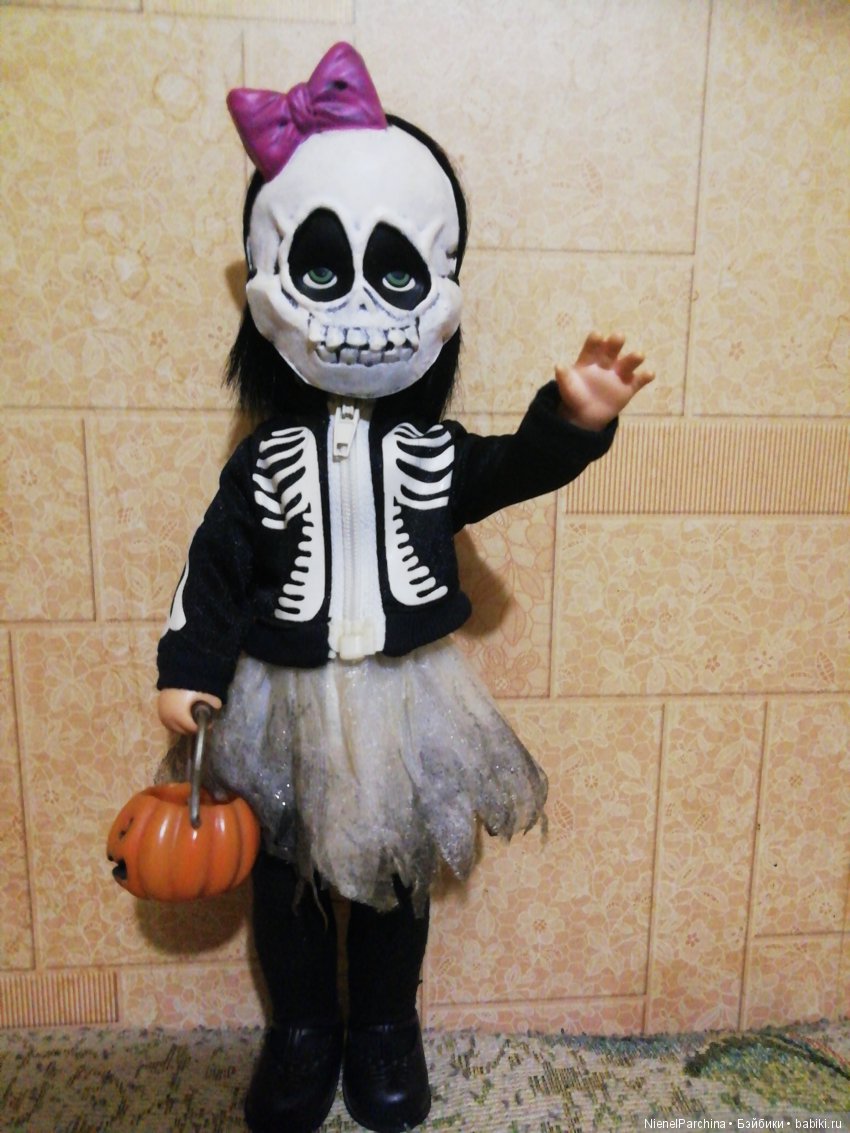 Персонаж Монстер Хай Скелиту Калаверас обожаю.Считаю её красавицей.Но она специально изготавливалась под такой образ.Даша Малинка для этого не предназначена совсем.Жалко малышку до слёз!