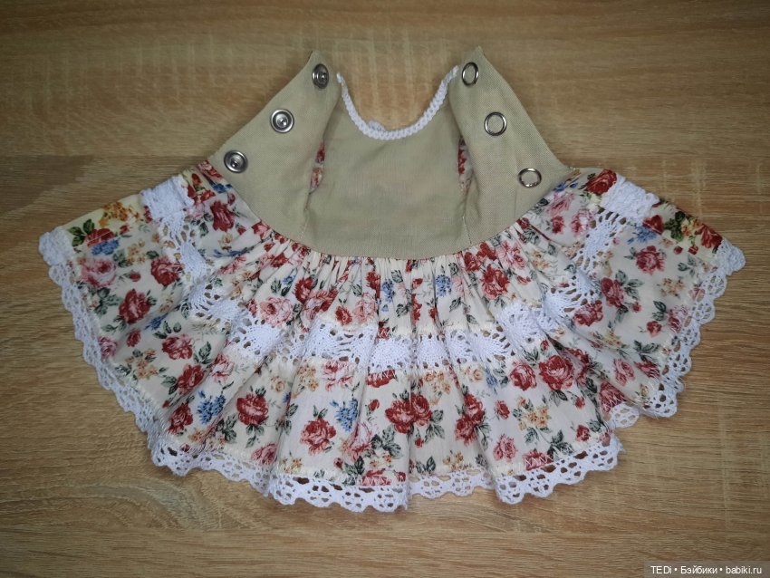Одежда авторская из натуральных материалов. В комплект одежды входят: платье и бонет из 100 % корейского хлопка. Платье украшено многочисленными хбэшными кружевами. По линии талии платье украшено авторским вязанным цветком, в сердцевине которого закреплена жемчуженка в оправе. Верхняя часть платья на подкладке.