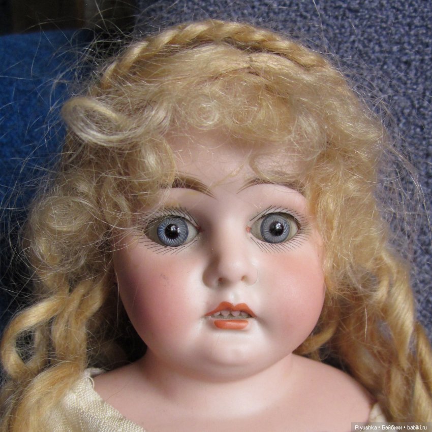 Марселечка (Armand Marseille) на кид-теле. По-моему это 370 молд или 390?, если я не ошибаюсь, первая отливка датируется 1894 годом. Так, что куколка действительно, антикварная. И датируется началом 20 века. Тапочки прошу не кидать, относительно того, что в точности с номером молда сомнения (у меня из Марселек только гуглик 323).