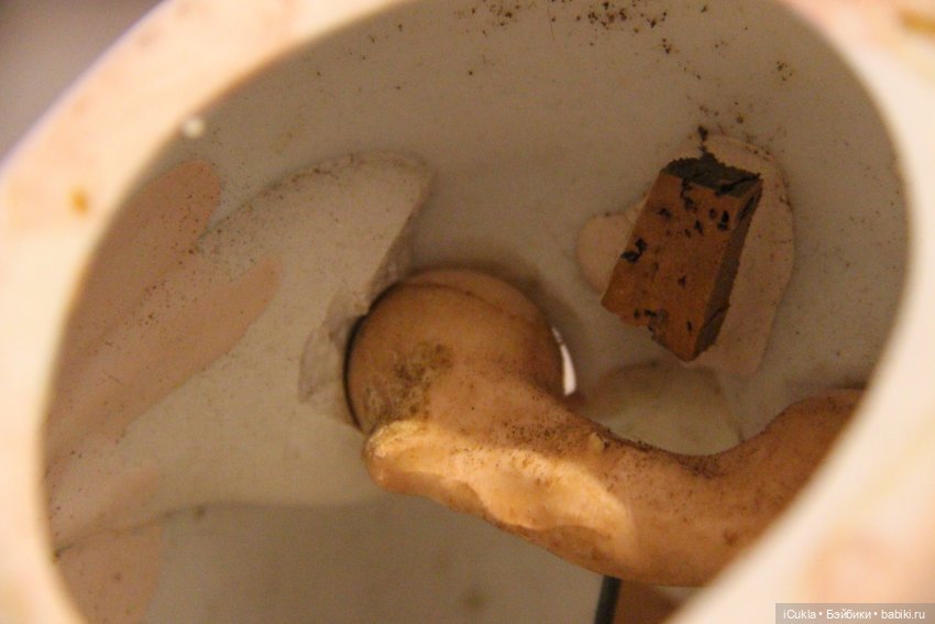 Посмотрите на черты лица. Картина. Брови. Во-первых, на репродукции должны быть инициалы художника. Внешний бисквит окрашен, а внутренний белый. Все внутренние механизмы антикварные. Рокер для глаз. Пробковая горловина. Ремонта вроде нет. Я думаю, что это ранняя модель 66 года немецкого производителя C. Krahmer
