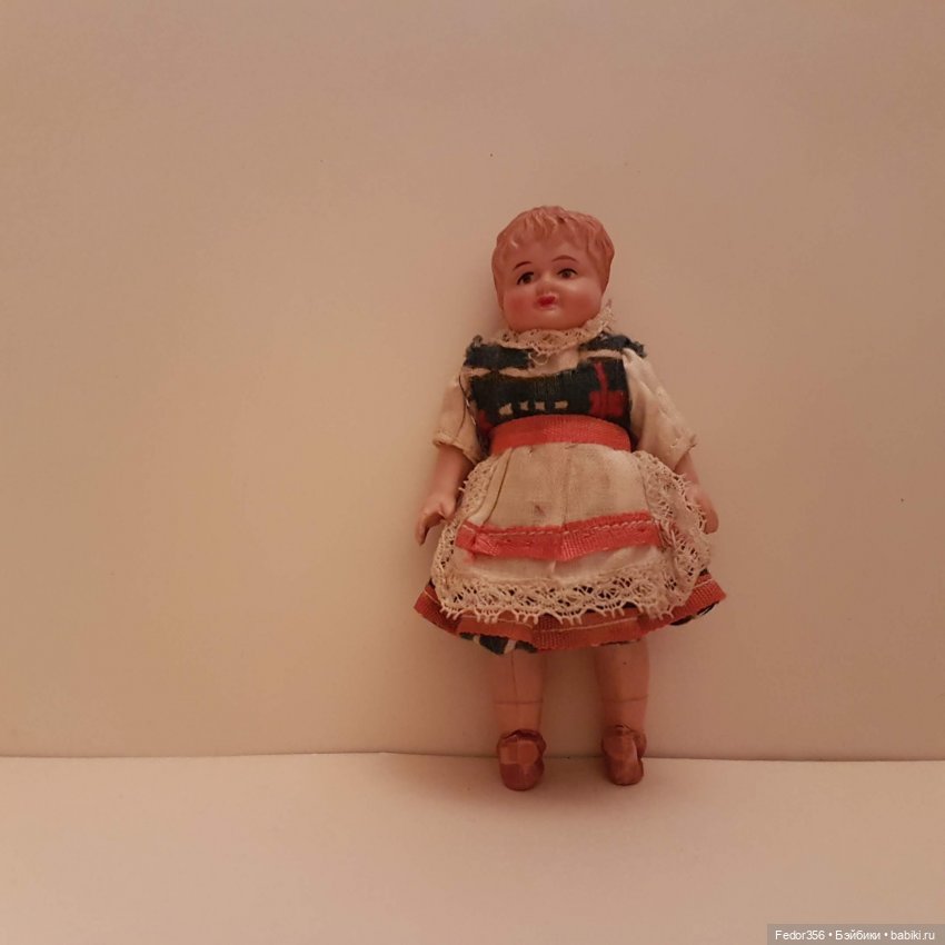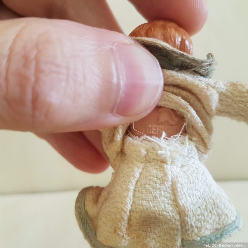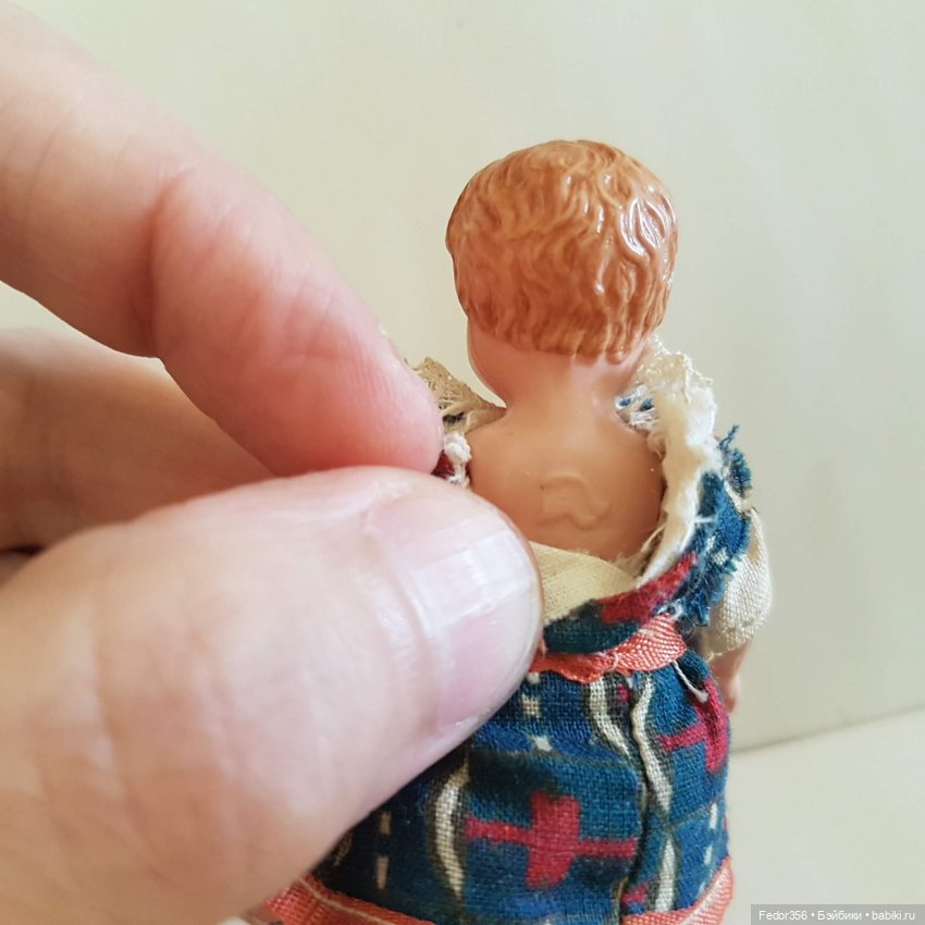 рост 9 см, материал предположительно целлулоид, клеймо есть, одежда несомненно оригинальная