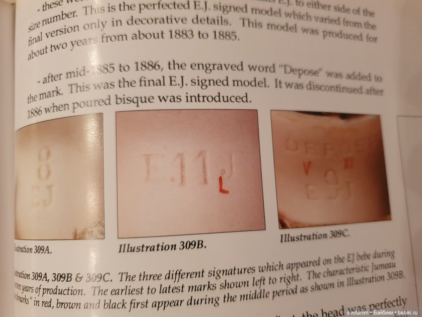 Понятно по написанию букв, что это все-таки Жюмо Лувр для магазина, но для разных размеров и разных кукол ( закрыто-открыто ротые) возможно по разному расставлены точки в молде, не знаю. В книгах все описания молда сводятся вообще к двум буквам B.L. и затем уже пишут что куклы были размеров от 1 до 12.