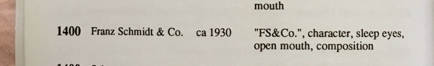 Собралась купить антикварную куклу, ну очень приглянулась лялька, FRANZ SCHMIDT молд 1400 с кокетливыми глазками. Все вроде хорошо с ребенком, но смущает то, во-первых, что я не нашла информации о таком молде, во-вторых- затылок очень подозрительно выглядит- номер молда выцарапан, а не отлит.