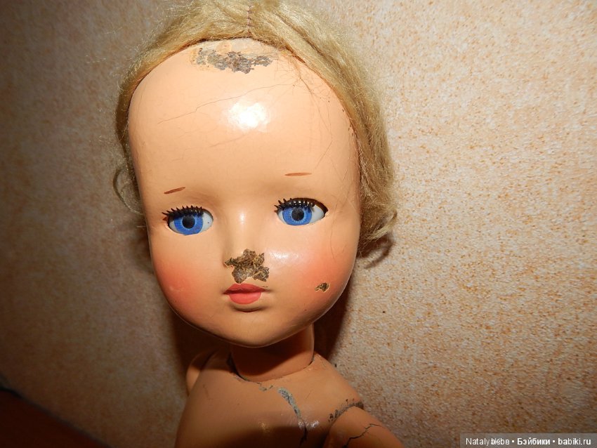 Рост 47 см., паричковая, очень интересный цвет глаз. Пробовала найти информацию сама, но не уверена ( Очень похожа на Ивановскую прессопилочную куклу, но смутил разрез и цвет глаз, нет прорисовки около глаз, пропорции тела и рост. А самое главное не нашла нигде информации о таком типе головы(съемная верхняя часть).Хотелось бы узнать о ней больше и попробовать восстановить.