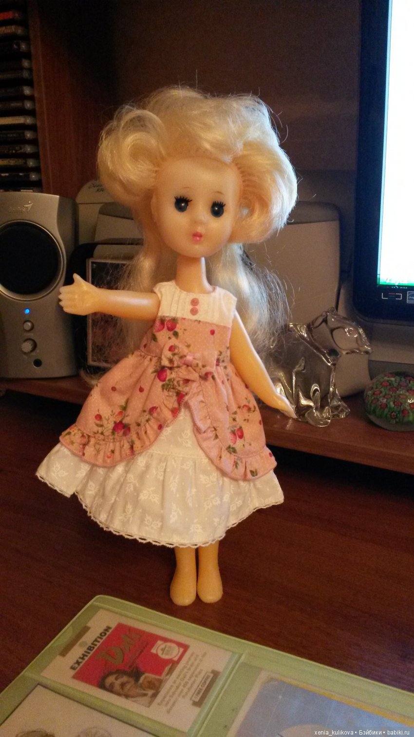 И так смотрим, может кто узнает. Нет никаких опозновательных знаков кто произвел. Платье и обувь родные. Губы и брови стерла, планирую нарисовать новые акрилом.