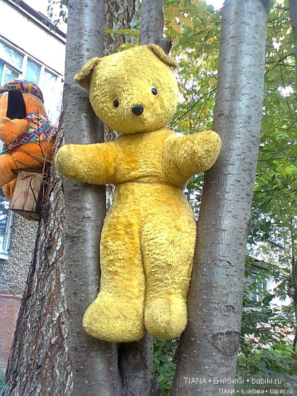 Совершили мы сегодня всей семьей спасательную операцию....))Сняли привязанного к дереву мишутку.Мишка советский, на спине бирка с ценой (6 руб.)Внутрь еще не заглядывала, но на ощупь торс набит опилками, а голова и лапы ватой.Внутри прощупывается «ревун», но, конечно, уже нерабочий.Буду приводить в порядок.Очень хочется узнать производителя и год, когда их выпускали.