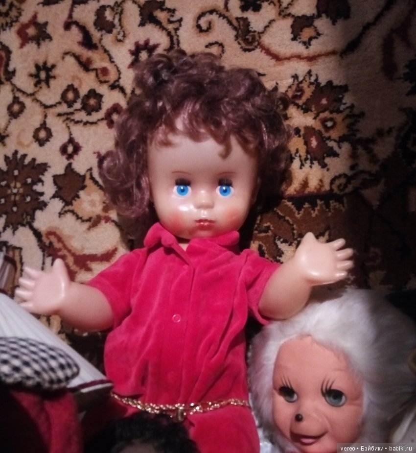 В очередной раз посетив дом родителей, принесла куклену.Как себя помню, все детство она была со мной.Звала ее Маринкой.Почему это имя? Не знаю.Может оно ее фабричное имя? Вот и хочется узнать, кто она на самом деле.Недавно наткнулась на фото где моя Маринка и девочка.На кукле никаких штампов и надписей нет.Если кто то владеет информацией-прошу поделиться.Заранее спасибо.