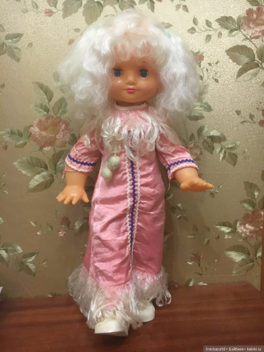 Здравствуйте, уважаемые куклолюбы! Сегодня одна знакомая отдала мне нескольких кукол. Есть девочки из ГДР, и наши, отечественные. Девочки долго хранились на даче, немочка не все пережили эту жизнь, о них потом. Буду просить вашей помощи и советов по их лечению. А эта девочка СССР. Наряд и даже обувь сохранились. Пока все мою и стираю. Но… очень любопытно, как звать девочку и какой она фабрики? Подскажите, очень любопытно. Лицо такое интересное… макияж, конечно, смоем. Глазки моргучие. Рост у нас большой, 65-70 см. Возможно она ходячая?.. спасибо за ответы. Гостям очень рады.