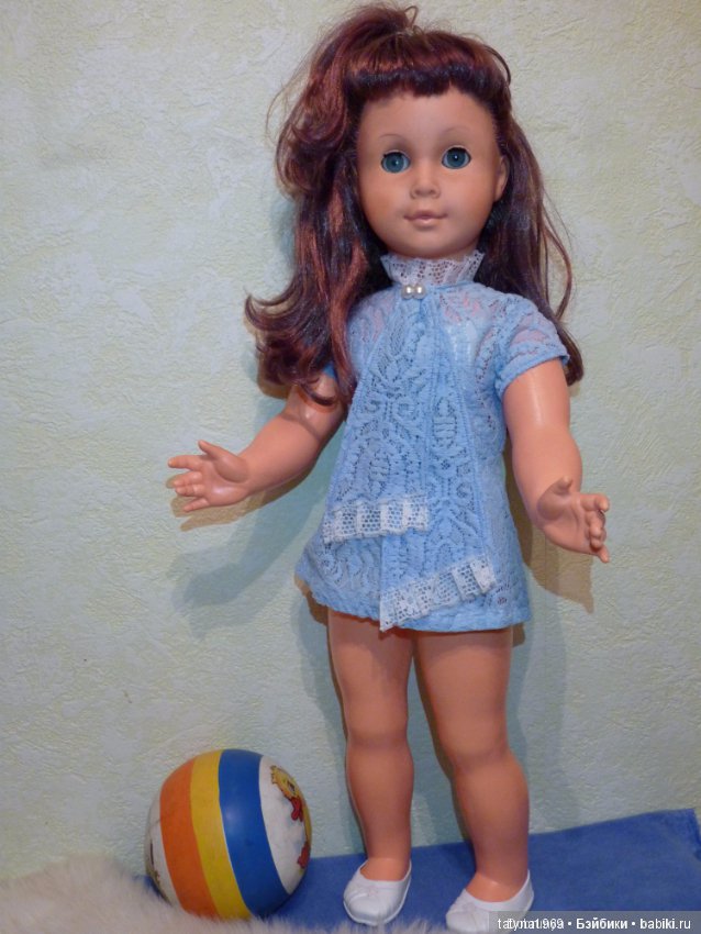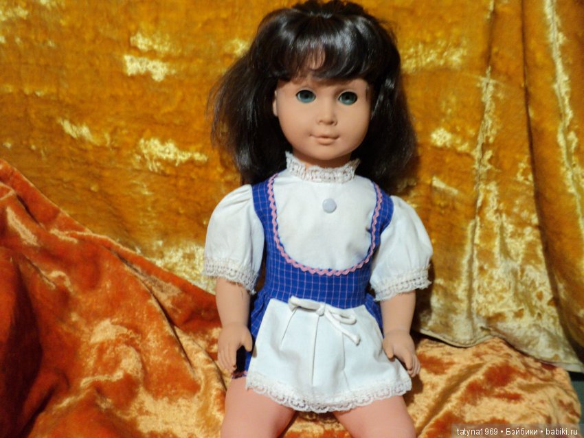 Вас я хочу попросить о помощи. Не знаю, кто она, искала в интернете, не нашла. Хочу одеть её в родной наряд, узнать её историю. Оксана девочка высокая, 60 см, ручки и голова резиновые, туловище и ножки- пластмасса.