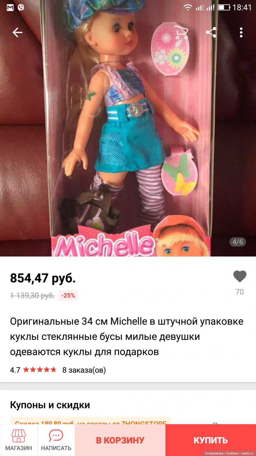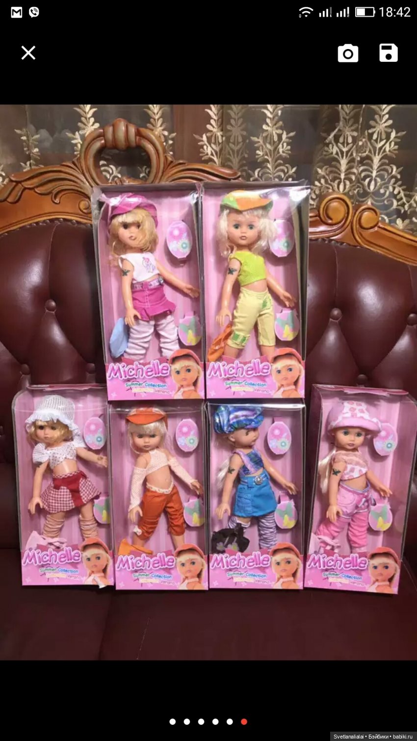 Моя как раз на фото где 6 куколок в коробке — нижний ряд первая справа, в розовой кепочке, топе, шортах и гетрах. Ещё сумочка через плечо, а в ней телефончик.
