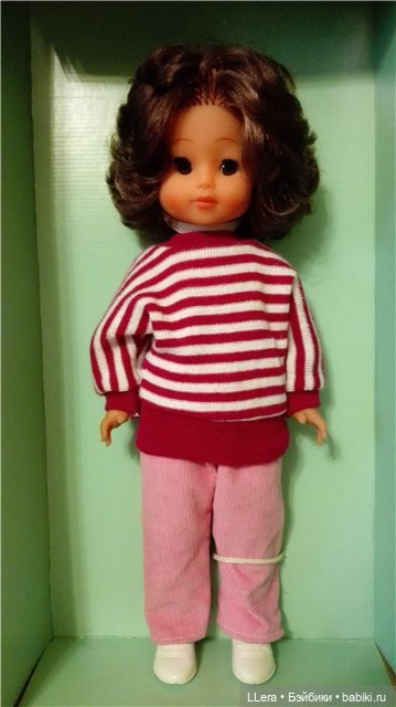 Девочка была самой любимой, заигранной. Она даже к морю со мной ездила. Несмотря на такую любовь, вся одежда родная ( у меня джинсов не было, а у неё были))), только туфельки потерялись.