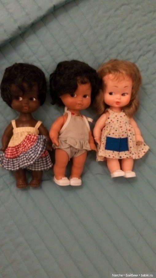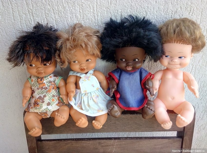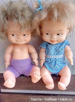 Наташа (Narche), на вашем первом фото пупс в голубом прямо похож на моего, такие же губки. Если у вас их много, вы можете что то интересное про них рассказать. Я увлекаюсь винтажными советскими куклами, а в таких куколках совсем не разбираюсь. Заранее благодарю!
