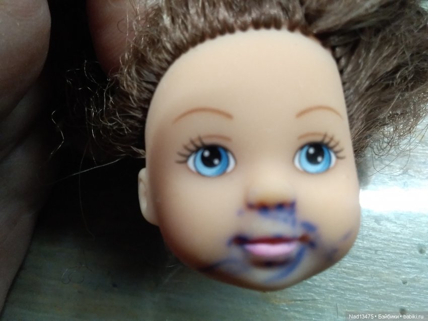 Это после манипуляции, но сначала от ацетона голова у куклы была слишком мягкая, но через день, вернулось прежнее состояние.