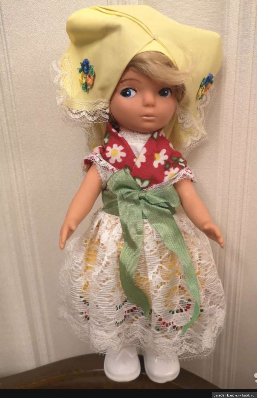 Вот это ранняя кукла, со спящими глазами были позднее. У моей был такой костюм.
