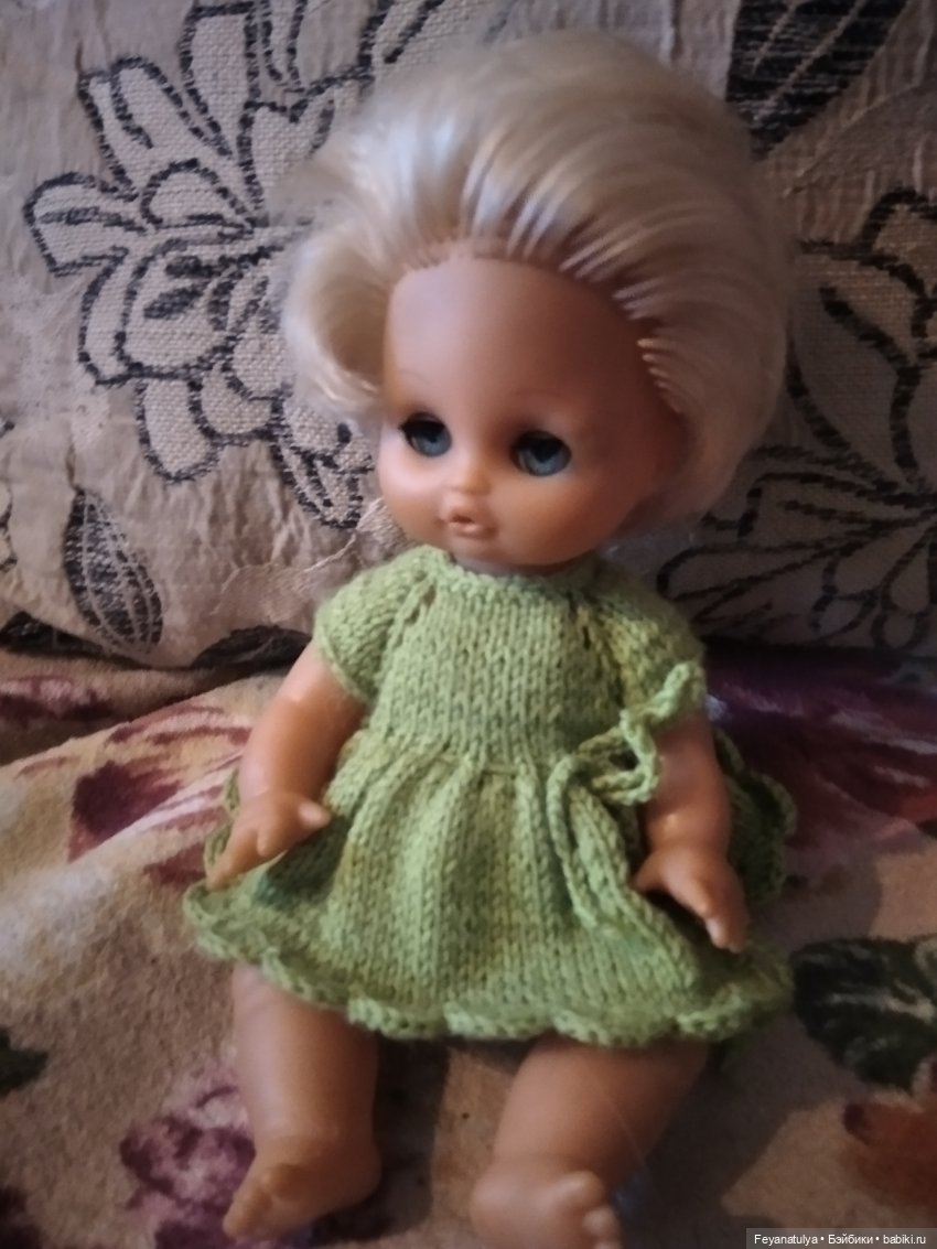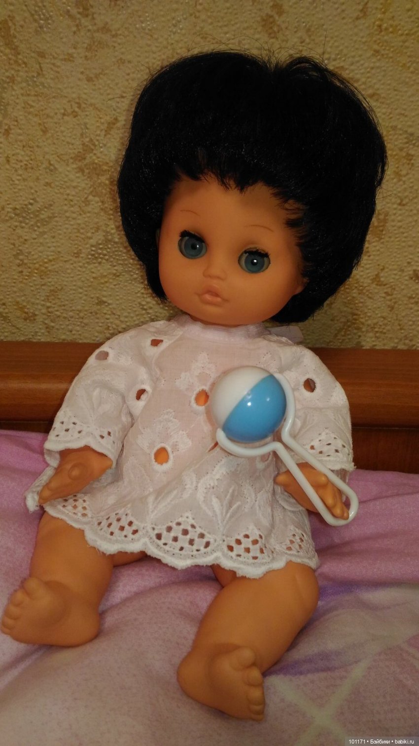 Оказывается, у меня было две такие куклы. Вторую, зеленоглазую и темноволосую в белом платье-распашонке с шитьем я сегодня узнала на фото у Ирины 101171