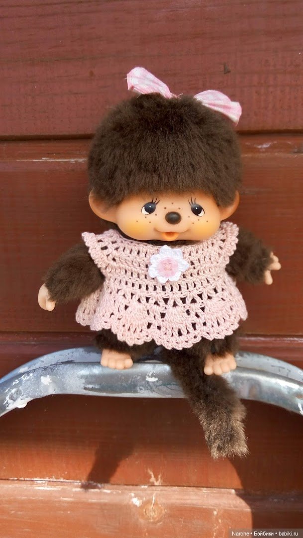 Подшили чепчик, подкрасили соску, причесали и помыли и вот она — прелестная мончичи или monchhichi, ждет свою ленточку для новой хозяйки)