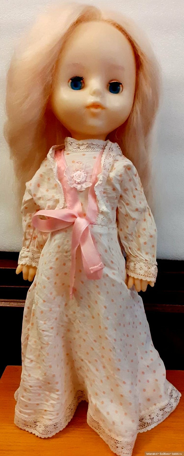Подруга нашла куклу своего детства, а вот что это за кукла, она не знает. Пожалуйста, помогите, подскажите, что это за девочка, как ее зовут и где ее создали. Рост куколки примерно 50 см. Заранее спасибо за любую информацию!