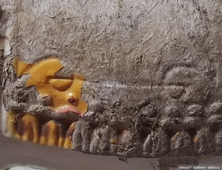 Состояние — «все как мы любим», страхолюдненькое. Но не смогла пройти мимо такой лепки. Скульптура у неё просто диво. Шишечки-бляшечки-кисточки, такая подробная мелочевка проштампована.